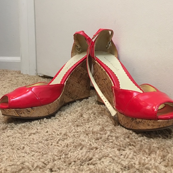 Cute red wedges. Used with small scratches but in good conditions overall.