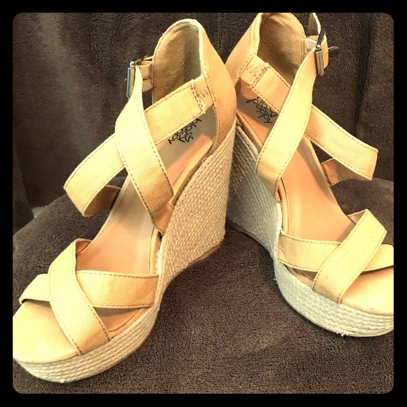 Tan/beige wedges. Only worn a couple times. In great condition! Perfect with jeans or a cute dress!