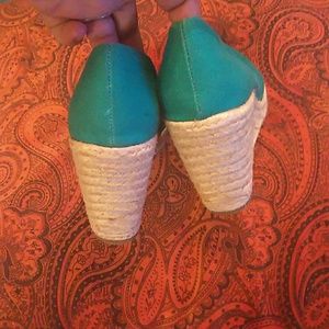 Greenish/Teal Wedges! These are super cute. I've worn only a handful of time and they still remain in very good, clean condition. These will add color to any outfit and they are very comfortable!