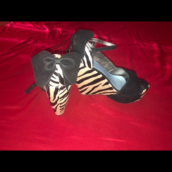 Zebra wedges with black bow in the back