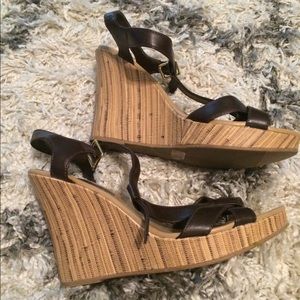 Dark brown straps and light brown and dark brown soles