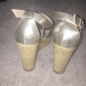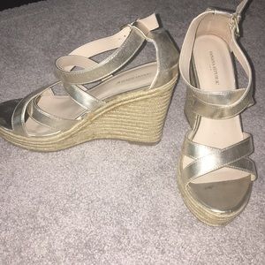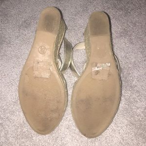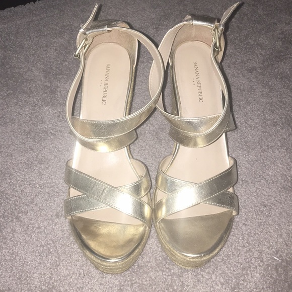 Strappy wedges with belt buckle closure. Good condition