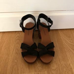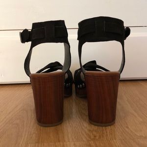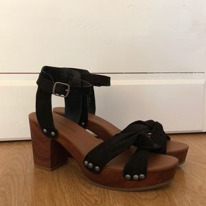 Lucky Brand wedges // black suede strapping, metallic studs, wood sole // super cute & comfy // worn once, excellent condition