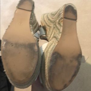 Tan design wedge with white ankle strap and peep toe 4 inch