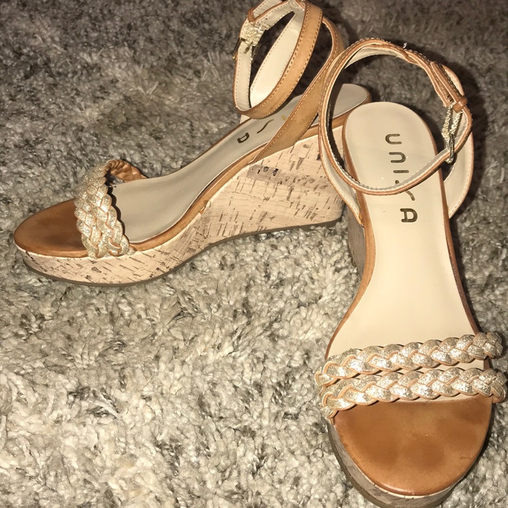 Camel colored wedges with sparkle braid. In great shape only worn once or twice.
