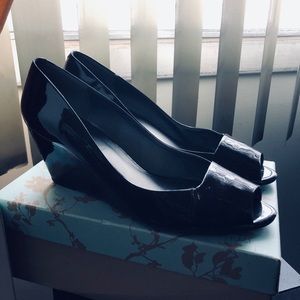 Nice patent leather wedge heels dress up & dress casual for any occasion..🤩,.. wore to office small repair on the side not noticeable very comfortable and jazzy shoe💃🏽