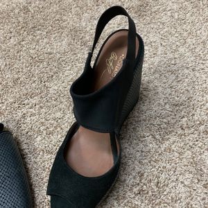 Black, sexy, pretty high wedge. Probably worn 3-4 times