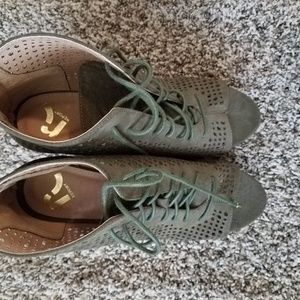 Put on your blue jeans and pair them with this beautiful wedges. Heeled sandals feature a synthetic leather upper. Slip-on wear. Open-toe silhouette.