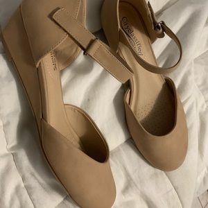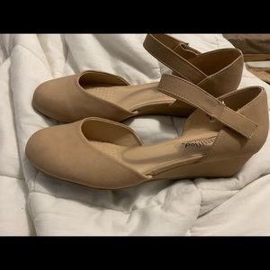 Tan wedges heel is about 1 inch. Never used comfortable