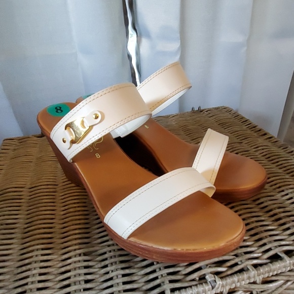 White. two straps. So very comfy. Only worn once. Needed white heels for an event.