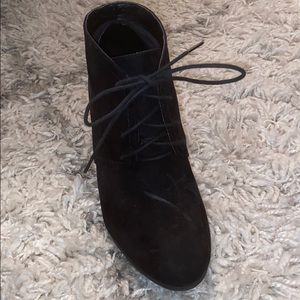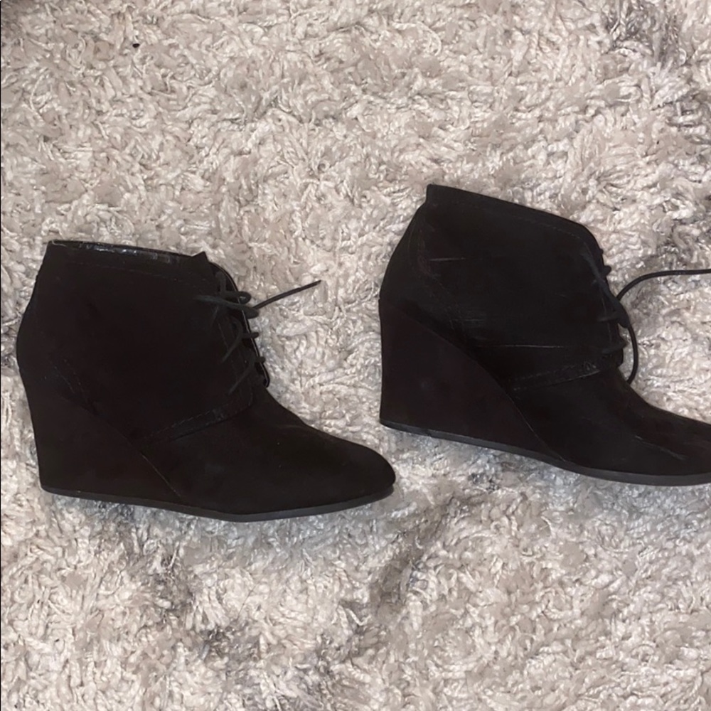 Black cute wedges that are in good condition but still worn. They are super cute and you would love them!