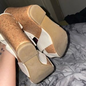 White wedges with wrap around strap. Corkscrew wedge, work a couple times great condition. Run slightly big