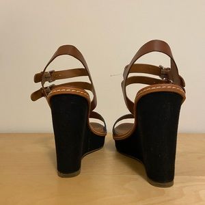 Blue, brown and black wedges. Super cute for summer! Worn once for a wedding. Too tall for me!