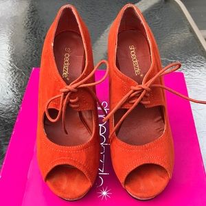 Orange lace up cork wedges from shoe dazzle. Great condition!
