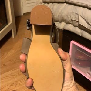 Light brown with brown heel and straps, you can tell they are hardly worn! Love these Steve Maddens