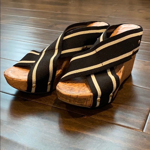 Adorable slip on wedges! The straps are stretchy!