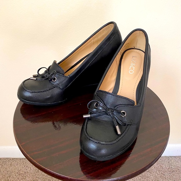 Wedge style loafers. Brand new! Color: Black Wedge height: 4 in.