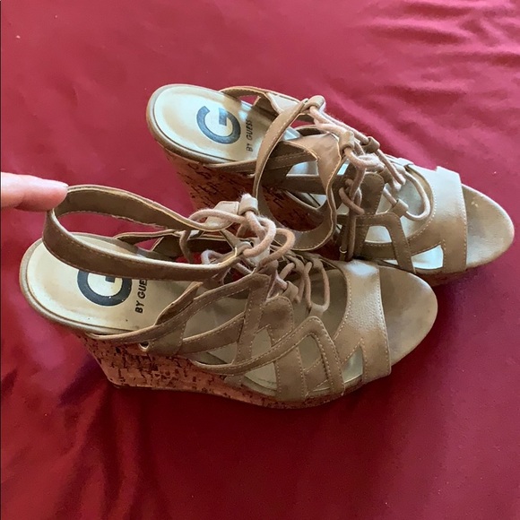 Guess tan wedges wore twice. Like new.