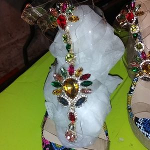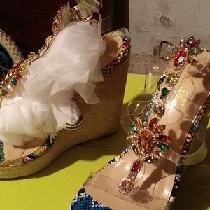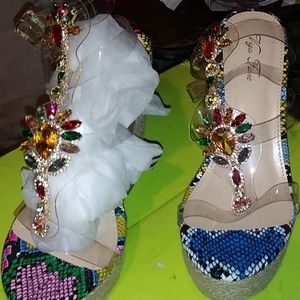 Multi Color ankle wedges with stone detail