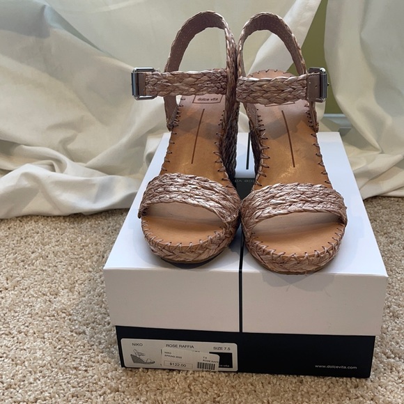 Beautiful rose raffia dolce vita wedges. They are too big for me as I am a size 6 1/2. Wore one time around the city