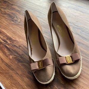 Beautiful Ferragamo wedges. These have not been worn a lot and are in good condition other than slight scuffing on the back.