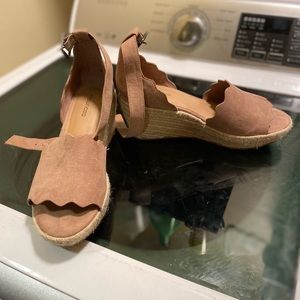 Pinkish taupe scalloped wedges with buckle ankle strap. Worn once. Great condition.