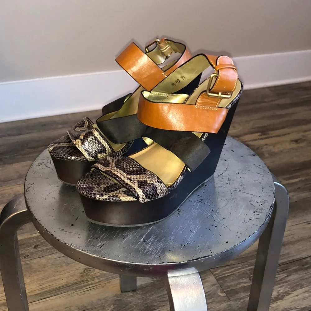 Just Fab wedges. Worn once. Been holding space in my closet. These are super comfortable. Snakeskin print. Super cute.