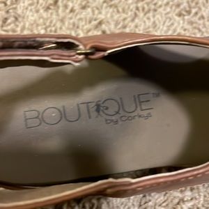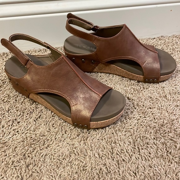 Cute brown wedge sandal with velcro strap closure. Worn twice. Super light weight and easy to wear!