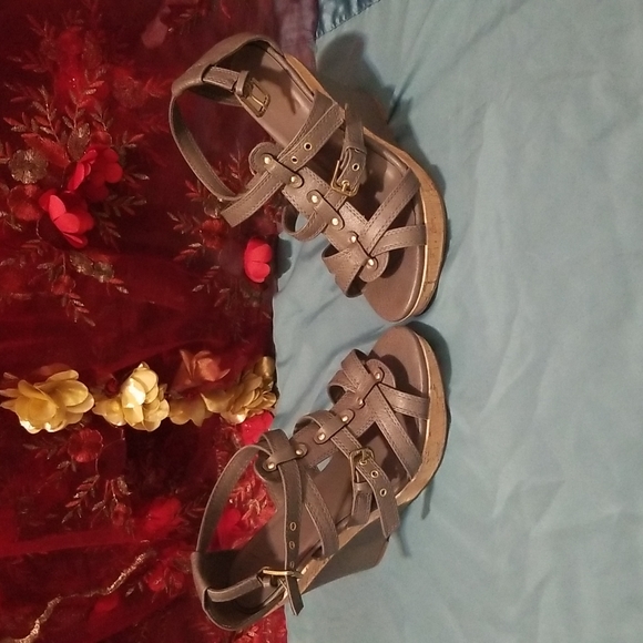 - gladiator style and gold studded - although a high heel, very comfortable