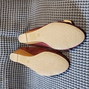 These wedge heels have never been worn and in pristine condition. The wedge heel is approx 1.75" tall. More of a maroon color. All reasonable offers considered.