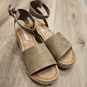 Lightly warn platform wedge heel, taupe color, 8.5 US (Brand Weeboo)