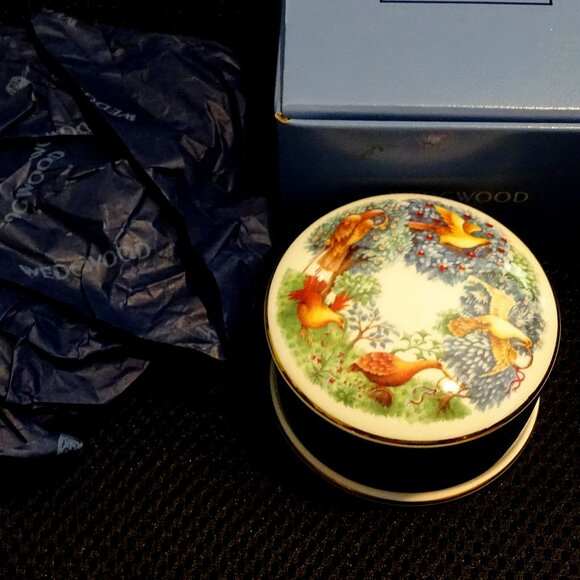 Wedgewood 5 Gold Rings Twelves Days of Christmas Round Trinket Box