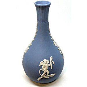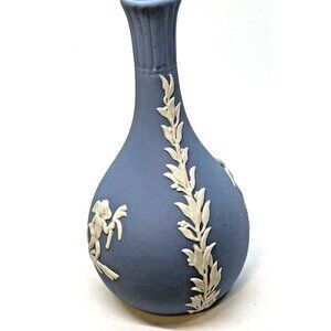 Wedgewood Blue Jasperware Cameo Bisque Small Bud Vase Vintage England