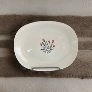 Add a touch of vintage elegance to your table with this beautiful Wedgewood oval serving platter. Made in England in the 1960s, this piece features the Pink Hope pattern with a glossy finish. The platter measures 12 inches in length and 9.5 inches in width, making it perfect for serving your favorite dishes.