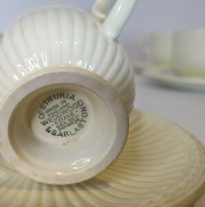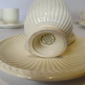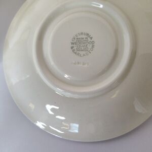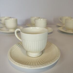 This elegant Wedgewood Edme Demitasse Cup And Saucer set is a true vintage piece from England, made of high-quality porcelain material with a glossy finish. The beige color and Georgian pattern make it a perfect addition to any collection or display.