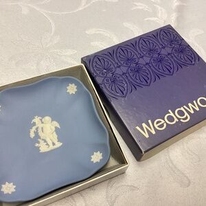 Wedgewood Jasperware White on Blue Trinket Dish BOXED. VINTAGE