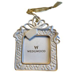 Wedgewood Ornament Picture Frame Easel Back White Gold Gift Tag In Box Tabletop