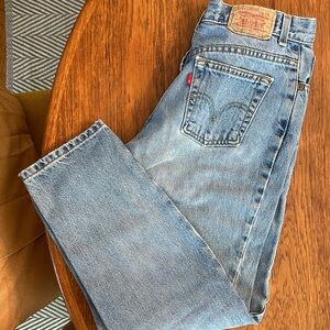 Classic relaxed wedgie bum levi’s. Not super high waisted, but still gets the job done on the rear end.