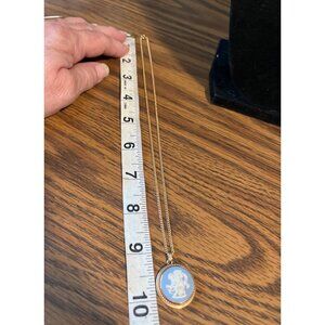 Vintage Wedgwood 1/20 12k gf chain and pendant. Has spring ring clasp that is marked 1/20 12k. Back of pendant marked Wedgwood made in England 69W. Good pre-owned condition.