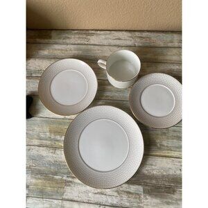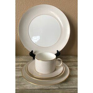 Wedgwood Arris Fine Bone China 5-Piece Place Setting Geometric Gold Trim| Dinner