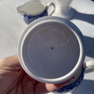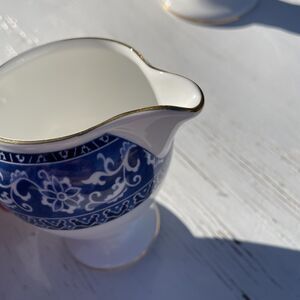 Wedgwood Blue Bokhara Coffee Pot with Gold Trim Sugar Bowl Creamer Set service