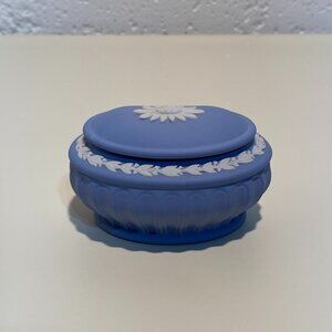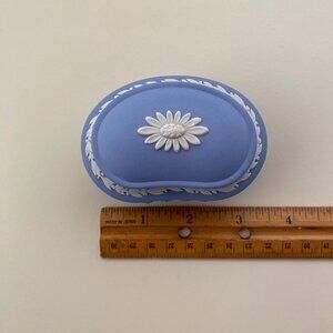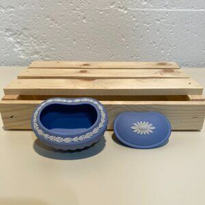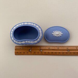 Wedgwood Blue Jasperware Kidney-Shaped Small Trinket Box with White Motif