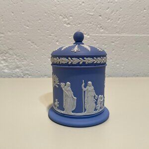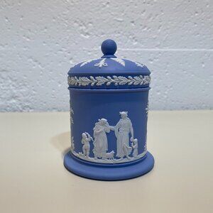 Wedgwood Blue Jasperware Lidded Jar with White Motif