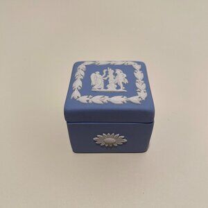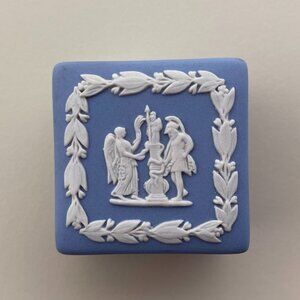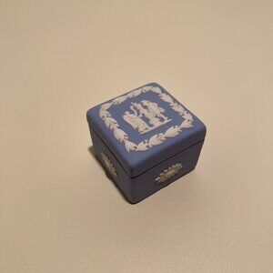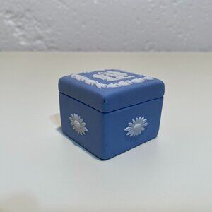 Wedgwood Blue Jasperware Small Square Trinket Box with White Motif