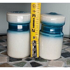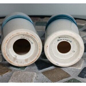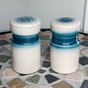 Wedgewood S&P Shakers in the beautiful BLUE PACIFIC oven to table pattern. Blue band. Pattern was produced from 1969-1993, then discontinued.