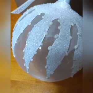 Wedgwood Blue White Frosted 4” Snow Glass Ball Ornament Original Box