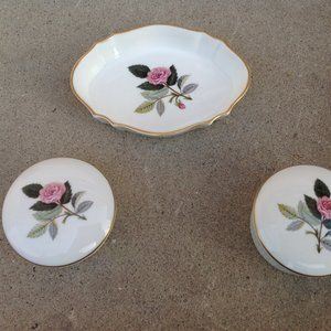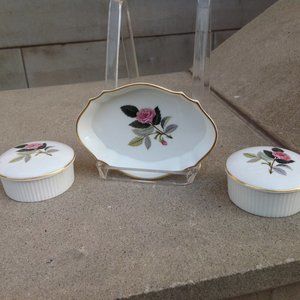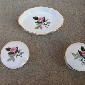 Wedgwood Bone China 3x Vanity Storage Hathaway Rose Pattern