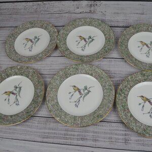 Wedgwood Bone China 8" Salad Plates SET 6 Hummingbird Humming Birds Pattern EUC