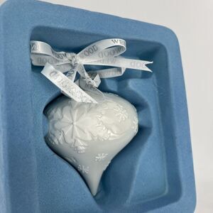 Wedgwood Christmas Ornament Porcelain Snowflake Teardrop White Ivory Relief 4”