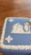 Pretty blue and white matte finish vintage Jasperware trinket box in square shape from Wedgwood England